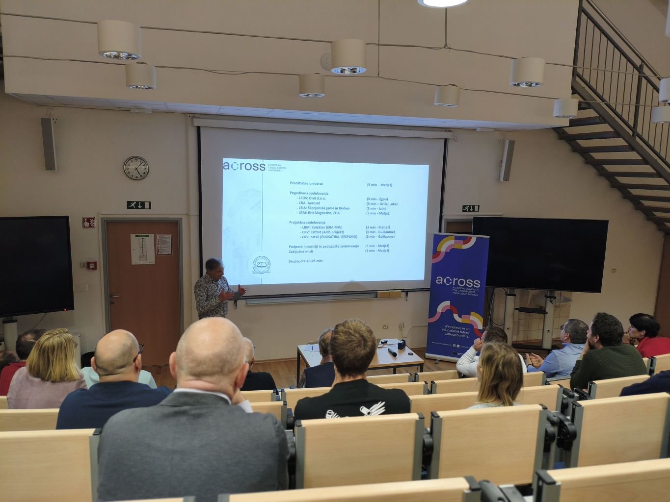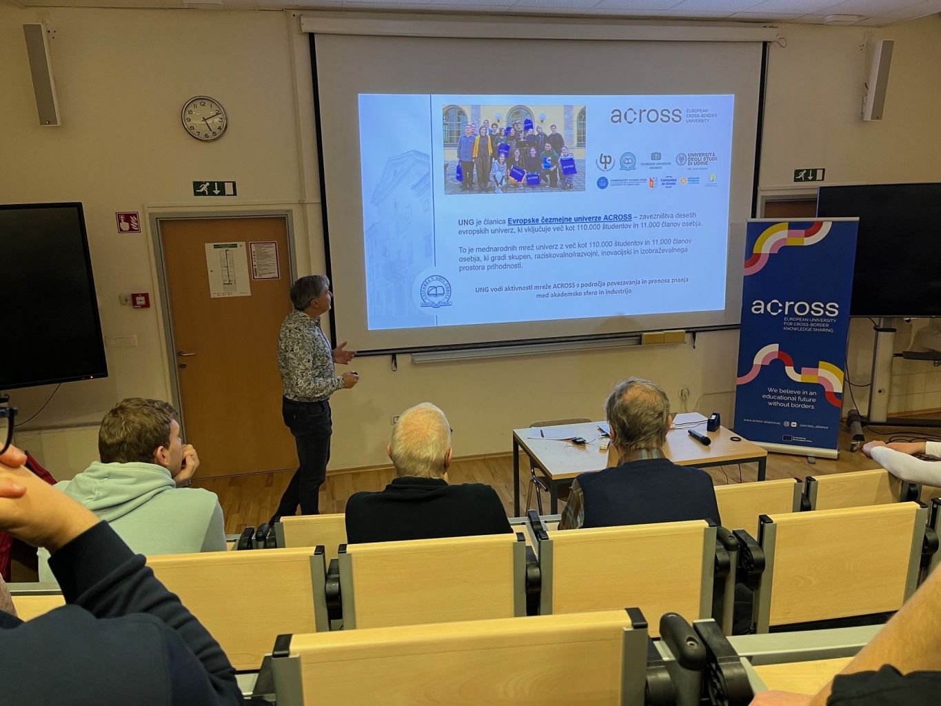 On Tuesday, 2nd December 2025, the University of Nova Gorica, in collaboration with the Northern Primorska Chamber of Commerce and Industry, hosted entrepreneurs from this region. In his introductory address, Prof. Dr. Matjaž Valant, Vice-rector for sustainable development and technology, briefly presented the University of Nova Gorica, highlighting its membership in the ACROSS – the European Cross-Border University Alliance. Within its Team Task 3.4, the ACROSS Alliance strives to foster cross-border collaboration in the field of research and innovation among member universities and external partners, as well as between research institutions and the business sector. Prof Dr. Matjaž Valant is the leader of this team task.