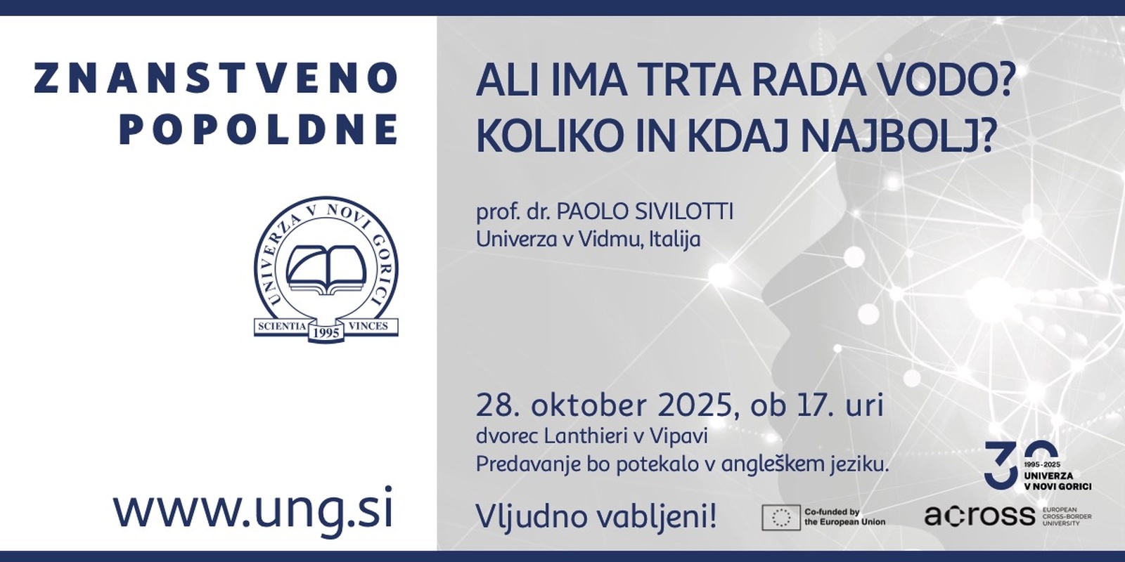 University of Nova Gorica invites to the public lecture Do grapevines like water? How much do they like? When do they like more? by Prof. Dr. Paolo Sivilotti (University of Udine, Italy).