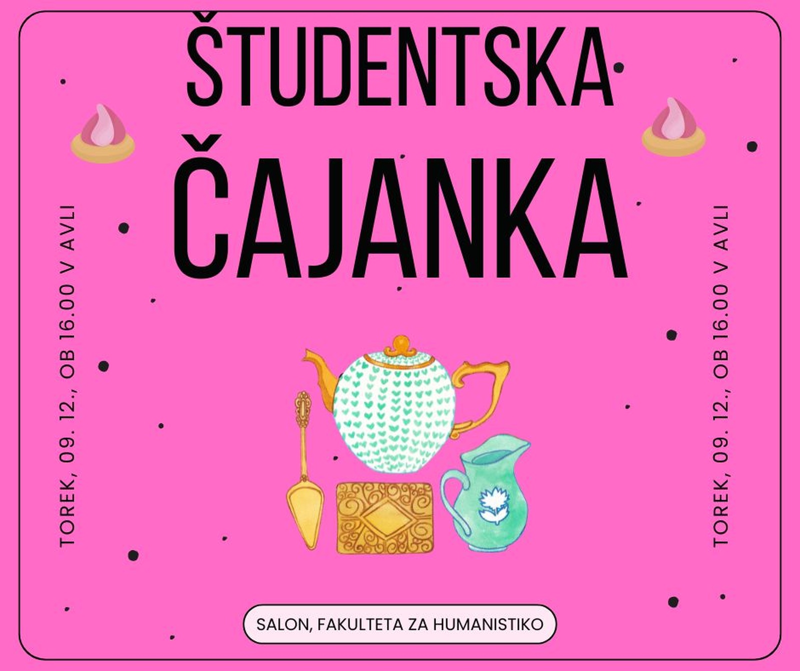Vabljeni na decembrsko čajanko, ki bo v torek, 09. decembra, ob 16. uri v avli Fakultete za humanistiko.