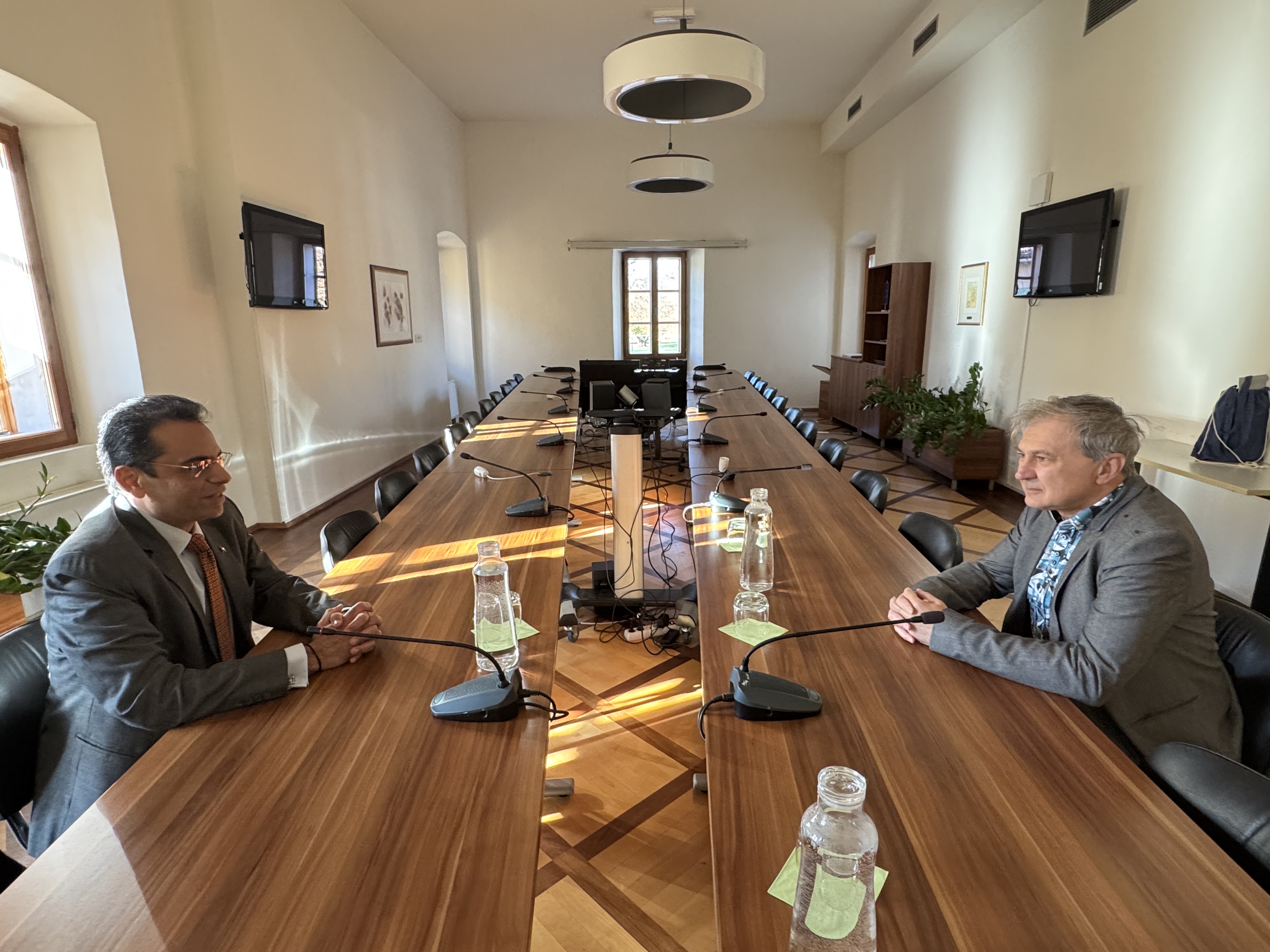 Danes je Univerzo v Novi Gorici obiskal indijski veleposlanik v Sloveniji, Nj. Eksc. g. Amit Narang, ki ga je sprejel prorektor Univerze v Novi Gorici, prof. dr. Matjaž Valant.