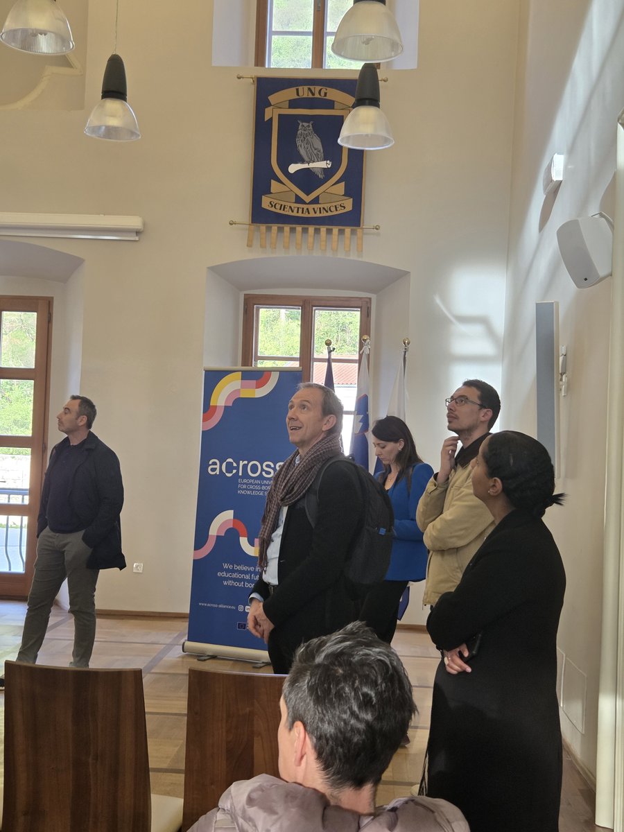 V četrtek, 9. aprila 2026, so Univerzo v Novi Gorici v Vipavi obiskali člani in članice delovne skupine 1.2 zavezništva Across, ki je odgovorna za vzpostavitev zavezništva kot pravne osebe. Obisk je bil del 2-dnevnega srečanja celotne delovne skupine 1.2, ki ga je sicer organizirala naša partnerica znotraj zavezništva, Univerza v Vidmu. Po uvodnem nagovoru rektorja UNG, prof. dr. Boštjana Goloba, je Jana Kete z Zavoda za Turizem TRG Vipava na kratko predstavila dvorec Lanthieri. Sledil je ogled laboratorijev Centra za raziskave vina in degustacija naših vin pod vodstvom doc. dr. Melite Sternad Lemut – vodje Centra za raziskave vina – ter s pomočjo doc. dr. Matije Martelanca s Fakultete za vinogradništvo in vinarstvo Univerze v Novi Gorici. Obisk je bil odlična priložnost tesnejšega sodelovanja med člani in članicami univerz zavezništva Across.