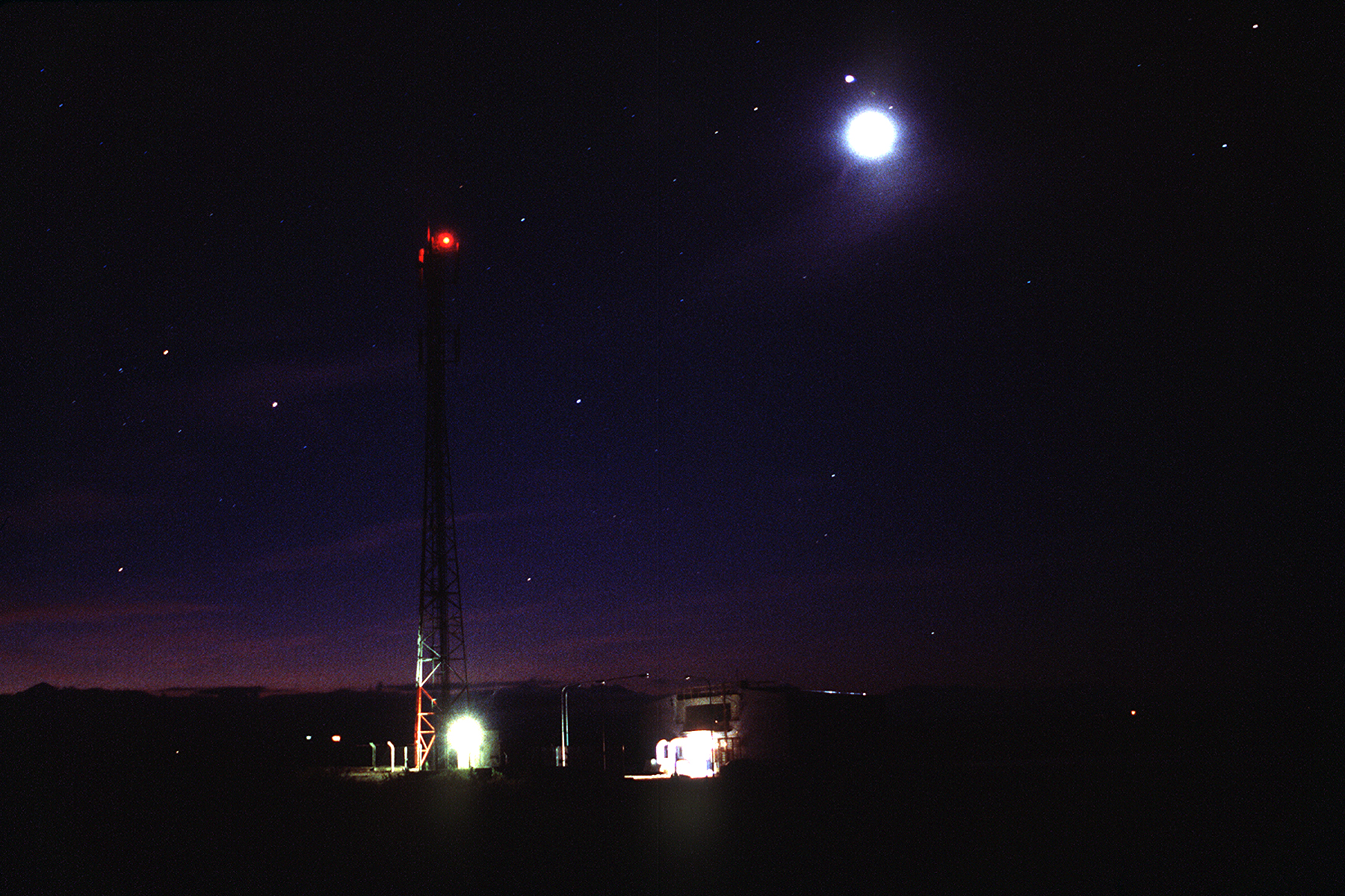 When construction is complete near the end of the year, the Pierre Auger Observatory will extend over 3000 square kilometers (~1000 square miles) in Argentina's Mendoza Province, just east of the Andes Mountains. The full observatory will consist of an array of 1,600 detectors that record charged particles created by air showers. Information gathered by the detectors is transmitted to a central data acquisition system using solar-powered cellular phone technology. Surrounding the detector array and looking toward its center is a set of 24 telescopes that—on clear moonless nights—observe the ultraviolet fluorescence light produced as shower particles travel through the atmosphere.