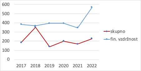Lestvica RUR vsako leto ocenjuje najboljše svetovne univerze ter jih razvršča po doseženih skupnih rezultatih in posebej po štirih področjih: poučevanje, raziskave, internacionalizacija in finančna vzdržnost. Ob podrobnejšem pregledu rezultatov lahko ugotovimo, da se UNG na treh od štirih področij ocenjevanja uvršča bolje od 255. mesta, edino na področju finančne vzdržnosti na 346. mesto. Slednji element je seveda tisti, na katerega ima inštitucija med vsemi najmanj vpliva oziroma je v največji meri odvisna od družbene podpore visokemu šolstvu in znanosti. Še očitneje omenjeni razkorak ilustrira spodnja slika, kjer je prikazana skupna uvrstitev UNG na lestvici od leta 2017 dalje (v rdečem), posebej pa uvrstivev zgolj glede na finančno vzdržnost (v modrem).